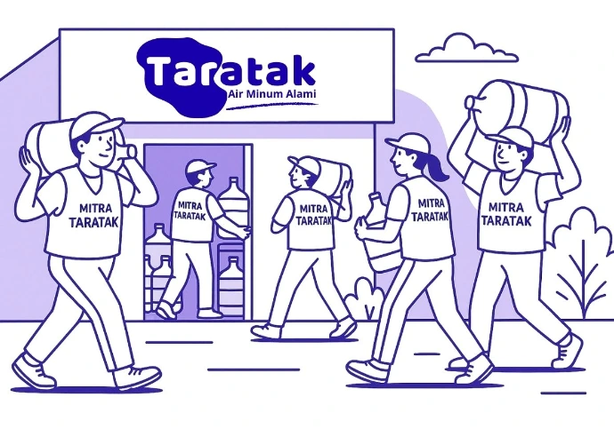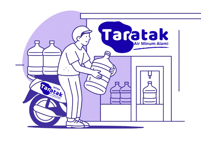 Taratak membuka kesempatan bagi masyarakat untuk menjadi mitra penjualan air isi ulang. Air disuplai dari sistem pengolahan terpusat, mitra fokus menjual dan melayani pelanggan di wilayah masing-masing.